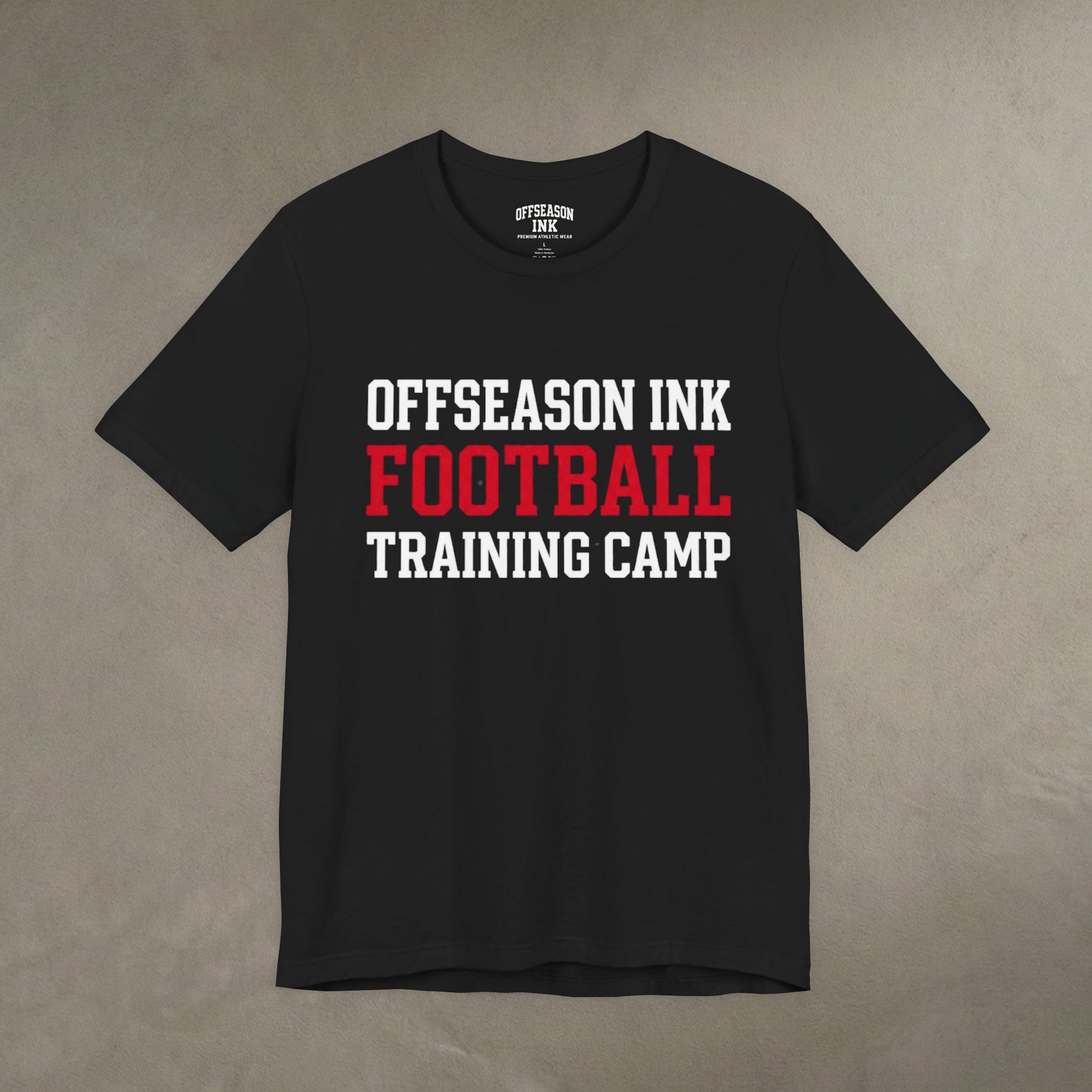 The OffSeason Ink Football Training Camp Tee delivers a bold, disciplined athletic identity with a clean varsity structure and a single red accent for the FOOTBALL division. Built with a premium fit and structured comfort, this piece represents the intensity and commitment of true training camp preparation.